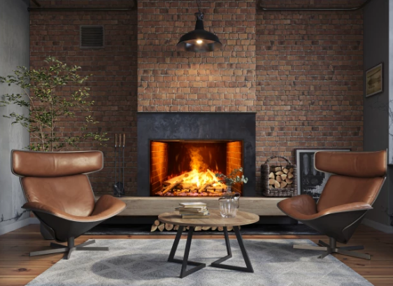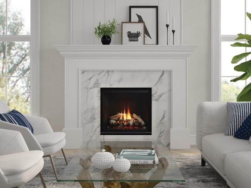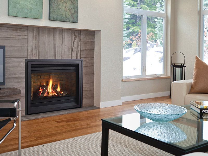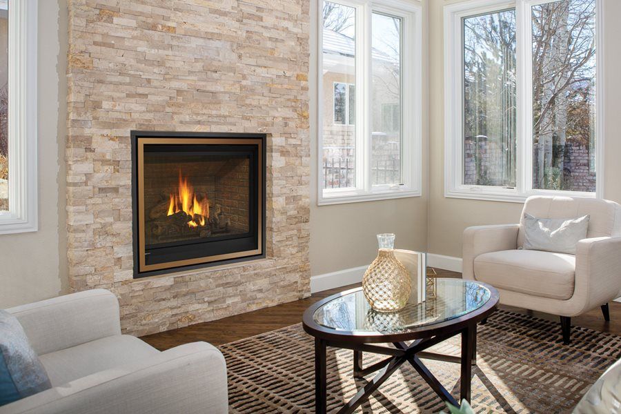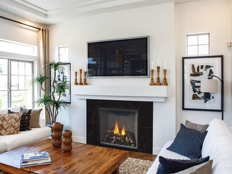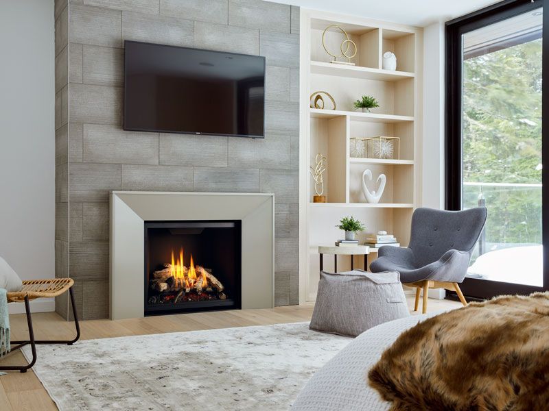 Cozy up with a pillow and watch the flames in your stylish high-efficiency fireplace.